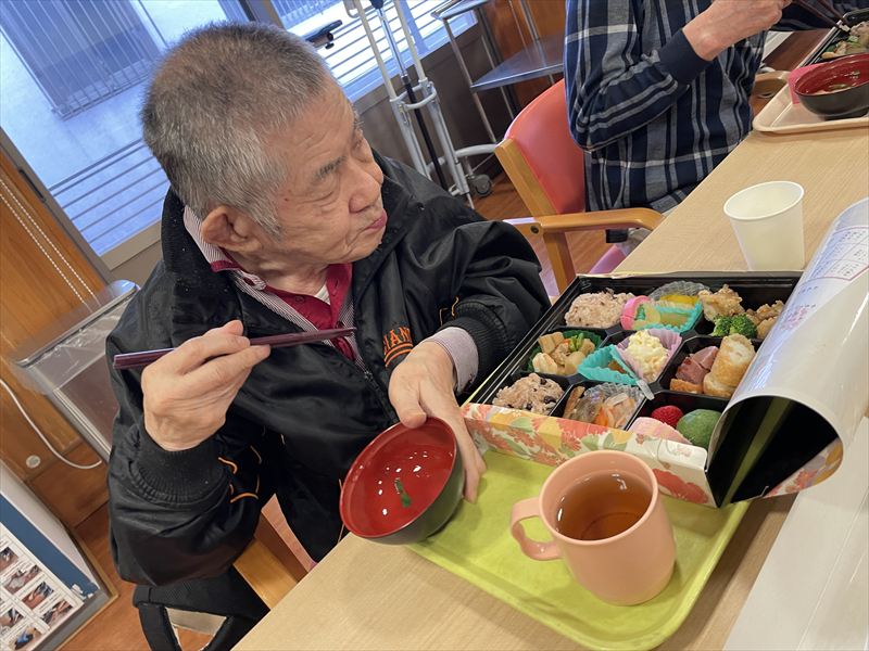 利用者みなさん、お正月気分を味わえるとともに美味しい料理を堪能していました🤤